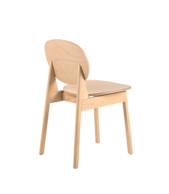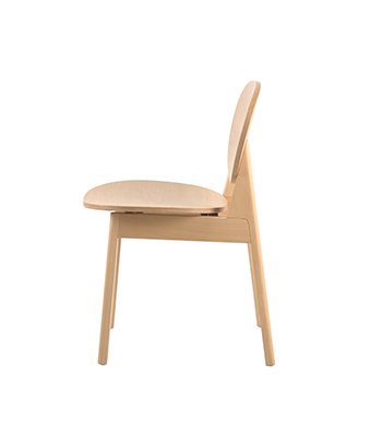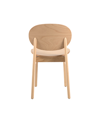 QIN椅最具特点的便是背部椅腿的三角支撑结构,从一点出发的两条边向下延伸,椅背顺势勾出倾角,提供舒适的倚靠。而它的边缘做圆润的顺滑转折,中和了角度的尖锐感。作为实木椅,材质也赋予了它温润柔和的质感,开放漆保留了木纹的毛孔,凸显出天然生成的肌理,用指尖感受自然的气息。